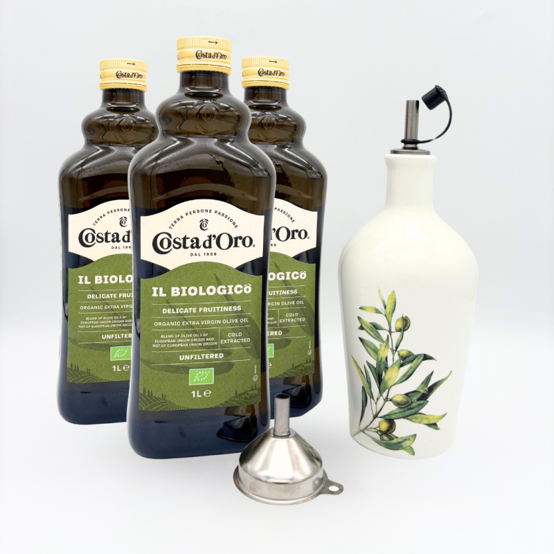 Mit diesem exklusiven Set von Olijfolie Concurrent kombinieren Sie Qualität mit Design: 3 Liter biologisches natives Olivenöl extra und eine elegante Keramikflasche für stilvolles Servieren. Ideal für Feinschmecker und gesundheitsbewusste Genießer.