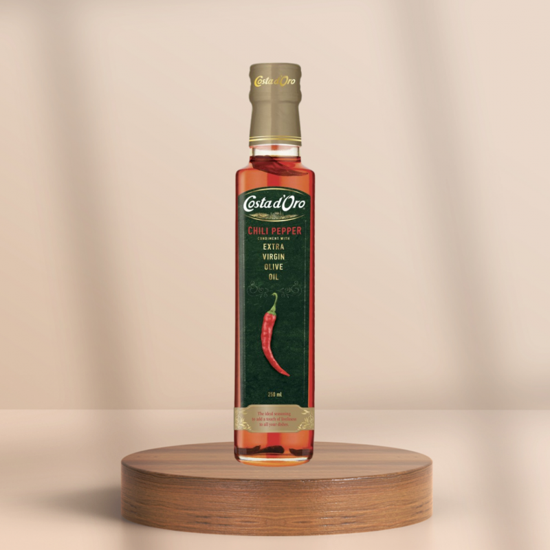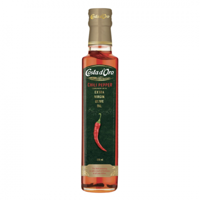 Onze Rode Peper Extra Vierge Olijfolie - 250ml combineert de hoogwaardige smaak van koudgeperste olijfolie met de pittige intensiteit van rode peper. Deze unieke blend is perfect voor liefhebbers van een vleugje warmte in hun gerechten en is ideaal voor zowel dagelijkse bereidingen als bijzondere gelegenheden.