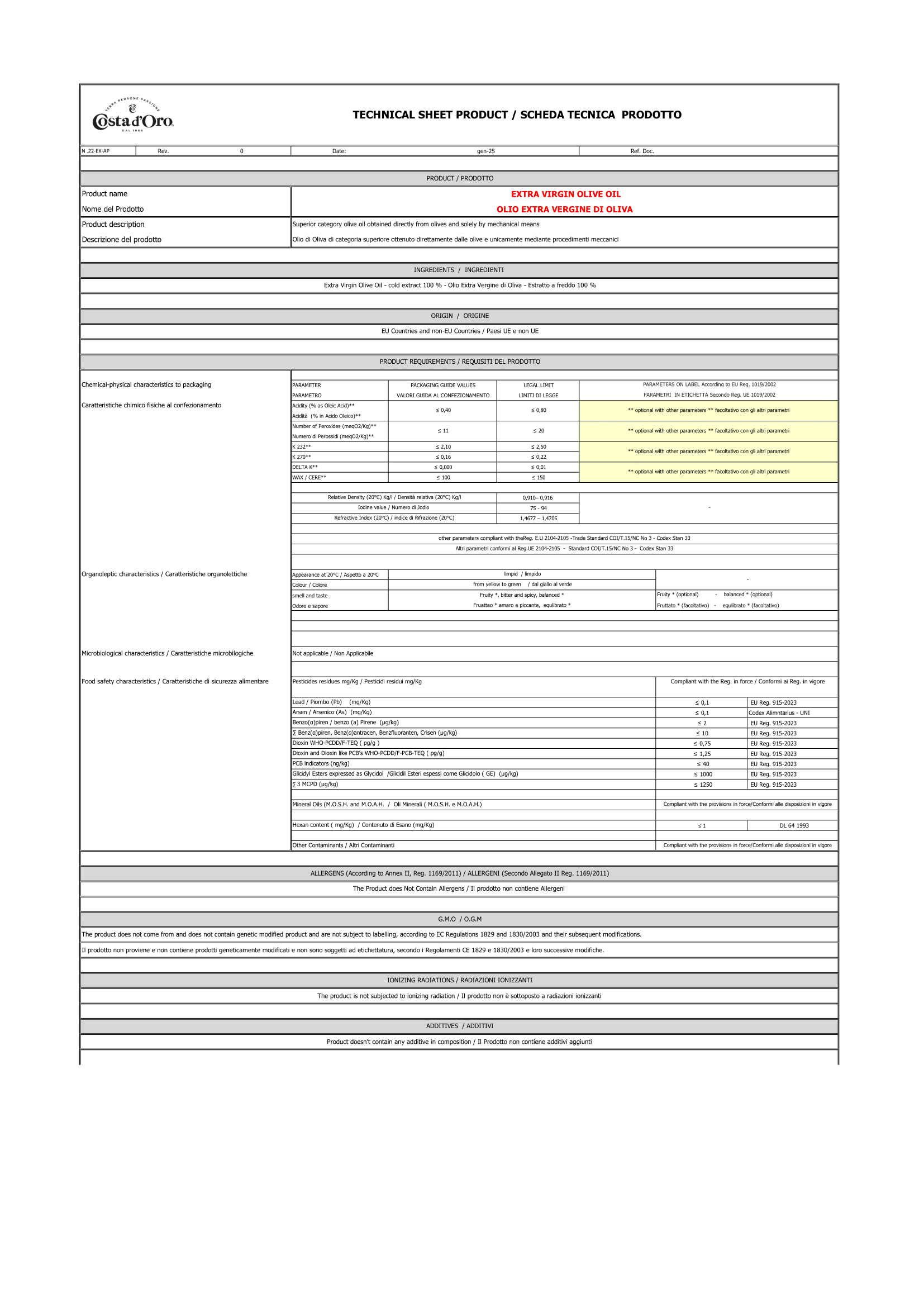 Costa d'Oro Extra Vierge Olijfolie heeft een rijke, volle smaak zoals je mag verwachten van premium kwaliteit olijfolie. Je proeft een fruitige basis, met een perfect gebalanceerde bitterheid en een heerlijk pittige afdronk. Die pittigheid ontstaat door het hoge gehalte aan polyfenolen en is een bewijs van de zuiverheid en topkwaliteit van onze olie.